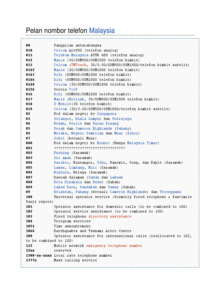 Kod Kawasan Telefon Dimalaysia Pdf
